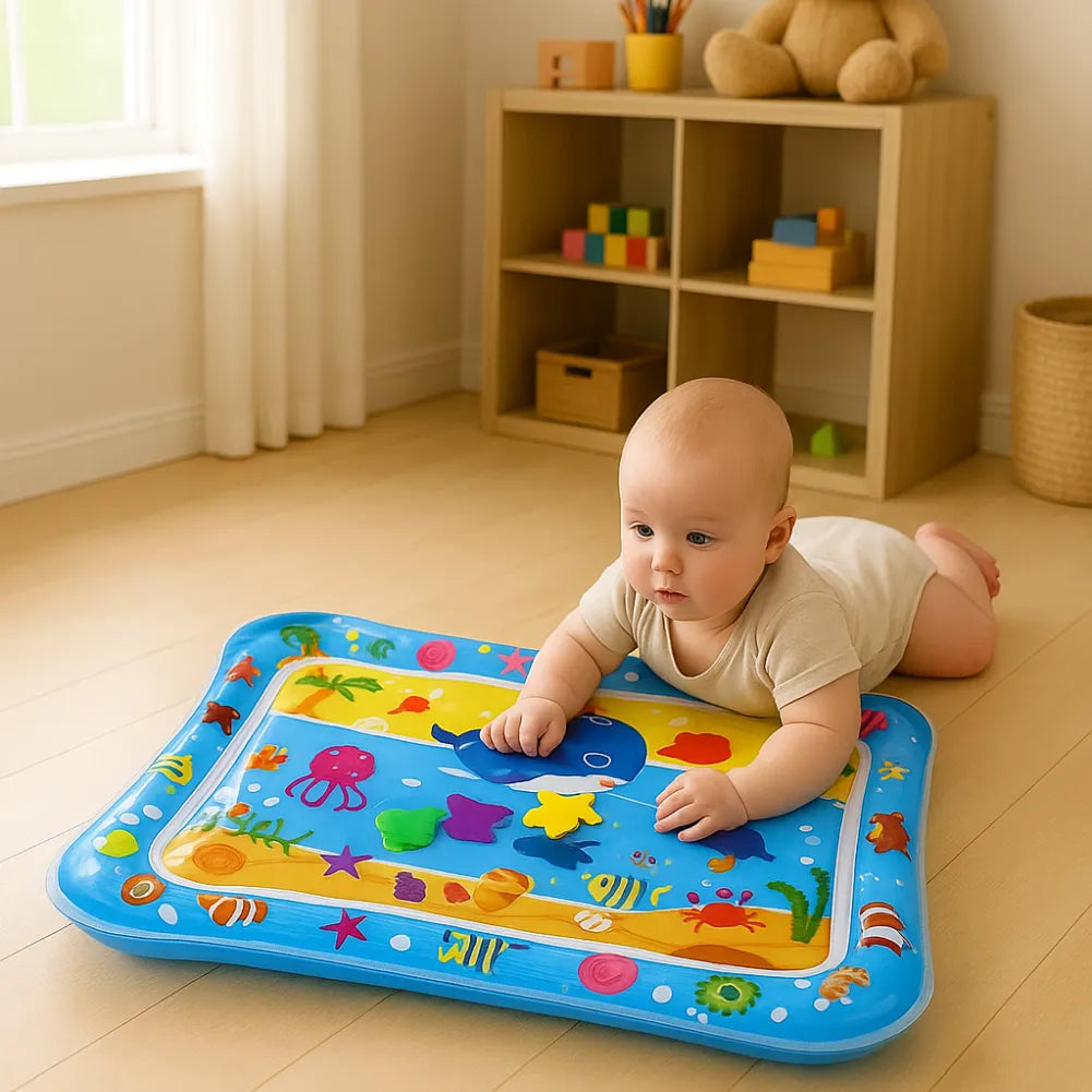 Tapis d’eau bébé - Tapis sensoriel gonflable décor océan joyeux et animaux marins